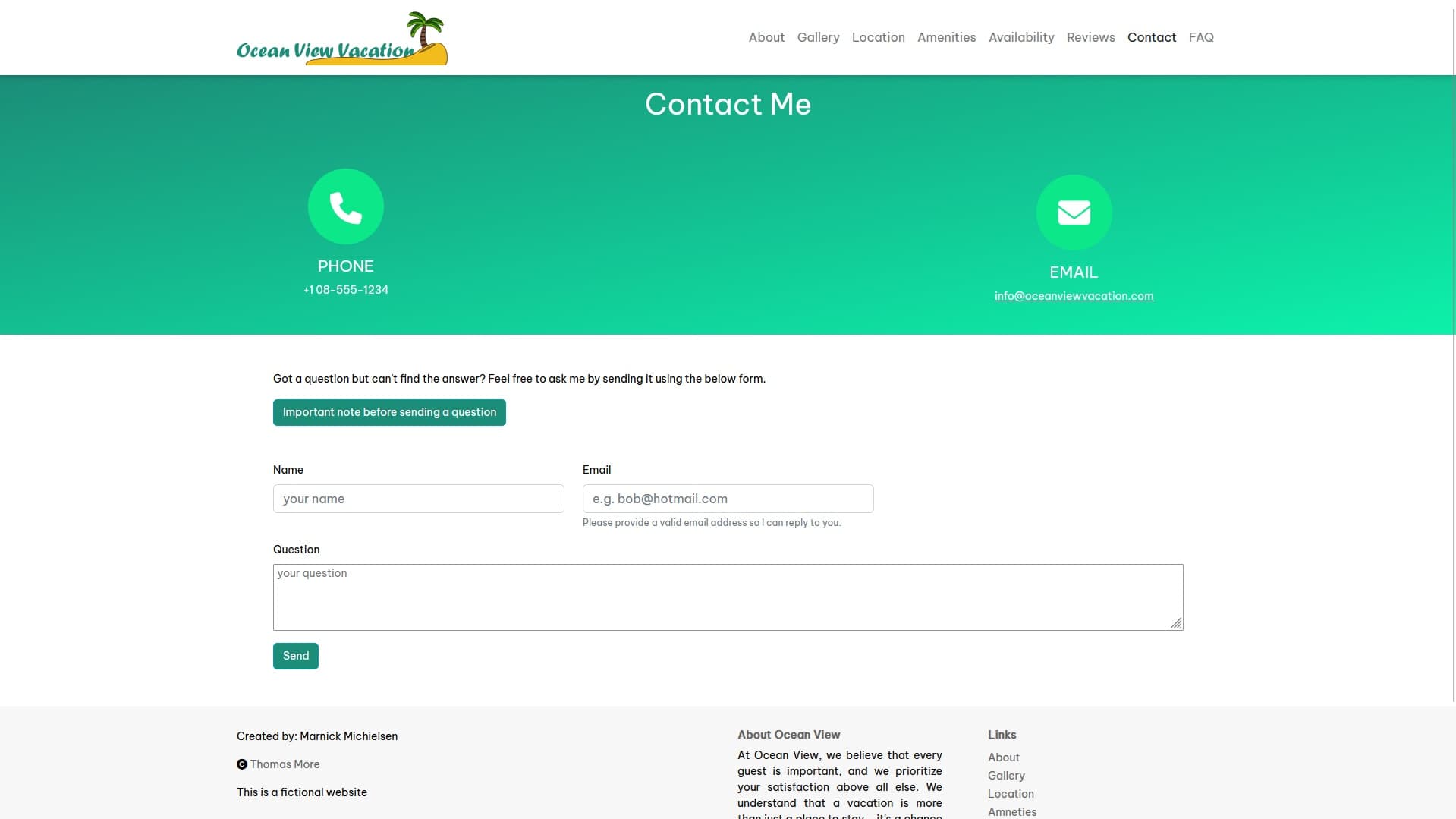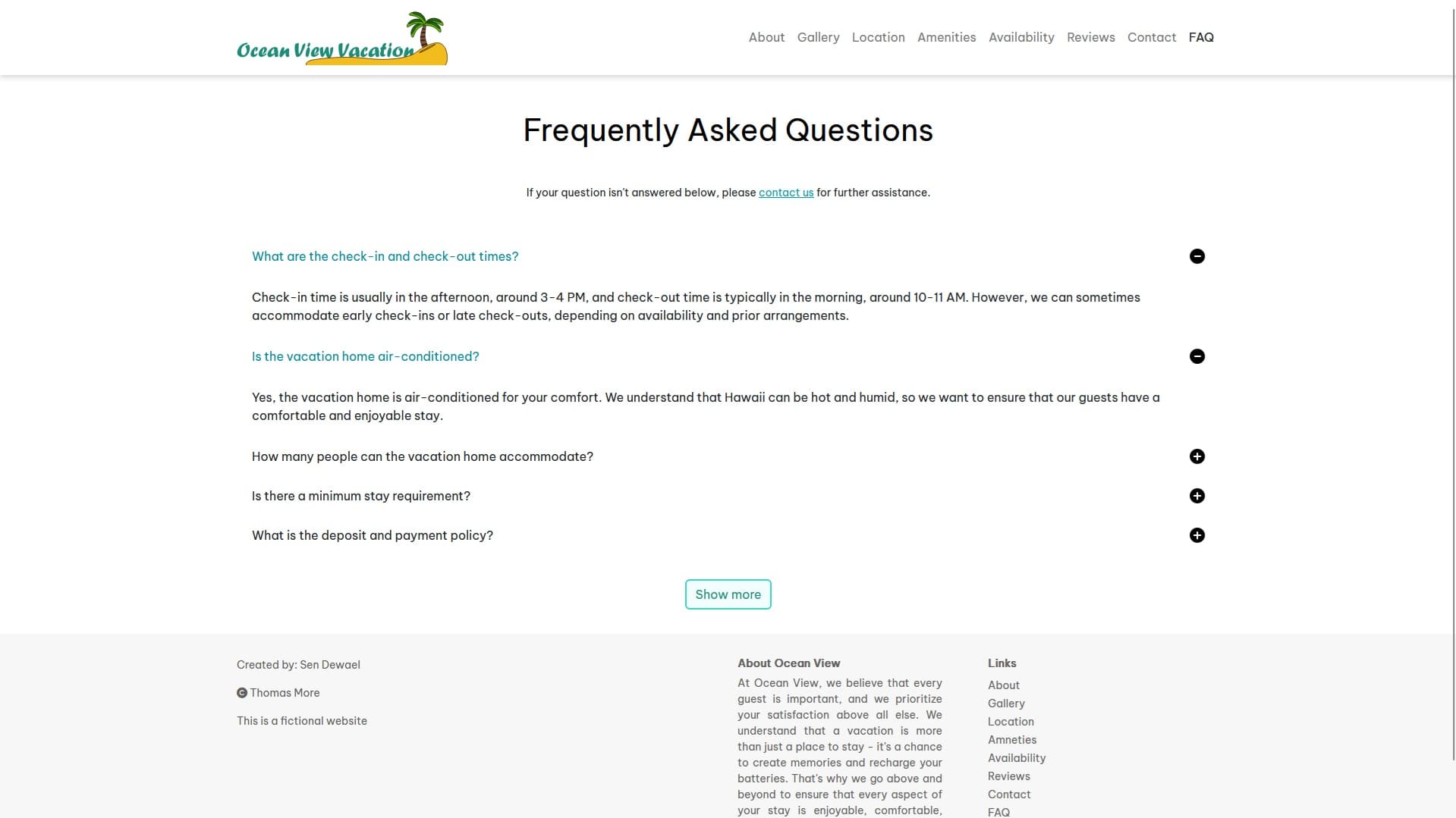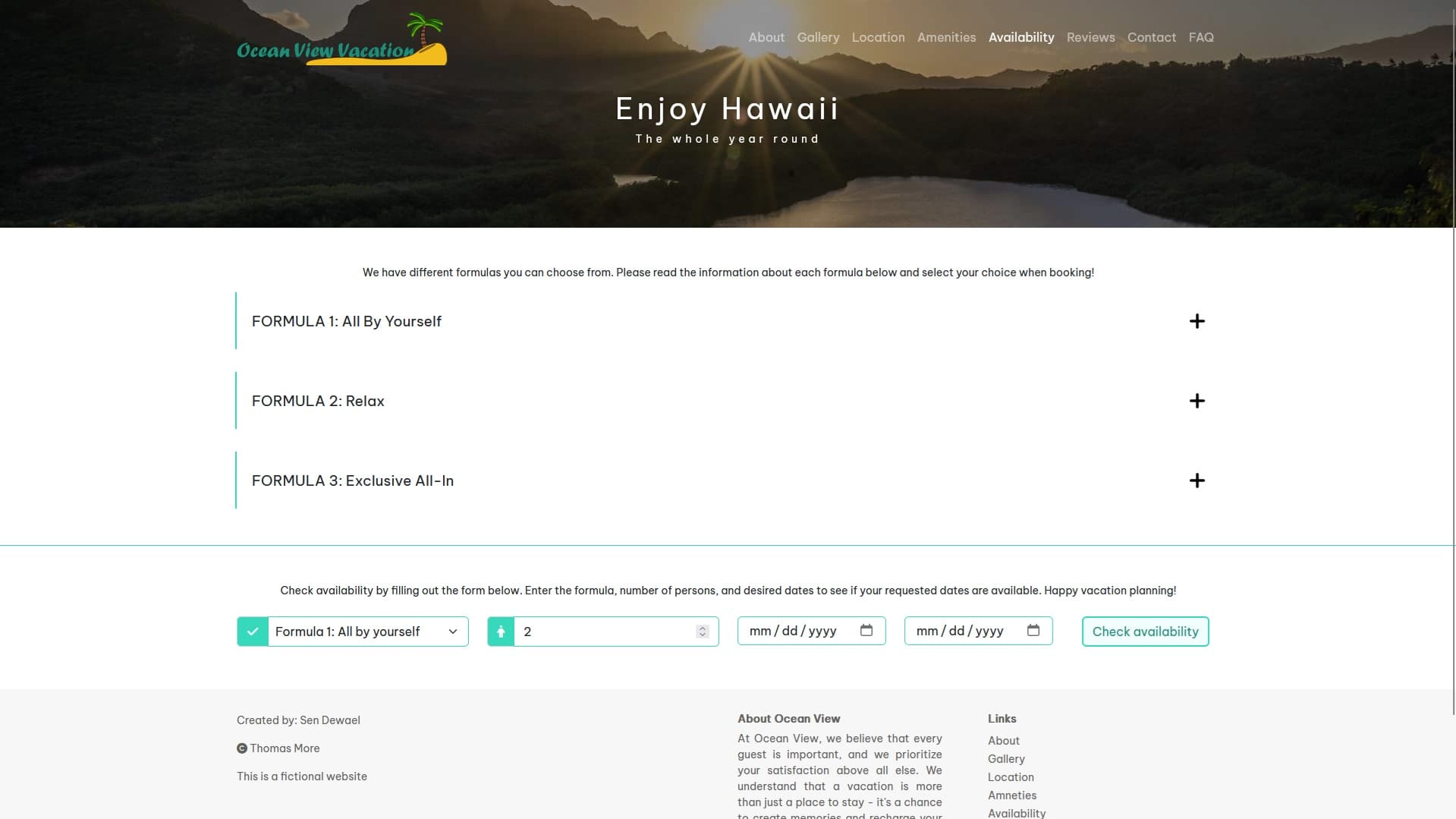 Ocean View Vacation is een fictieve website die een luxe vakantieoord promoot, met oog voor visuals, sfeer en structuur. Een groepsproject rond webdesign met Sass en Bootstrap.